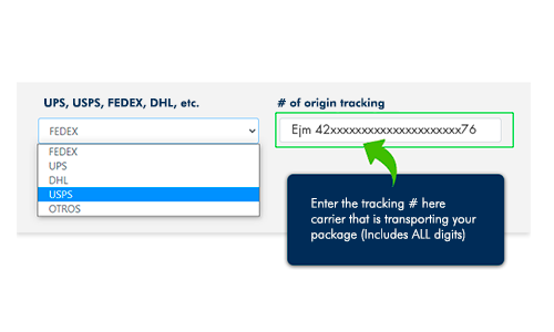 Select the carrier and enter the tracking # for your shipment, from the online store to your Omniva locker in Miami. This information is sent to you by the online store to your email within 1 or 2 days.